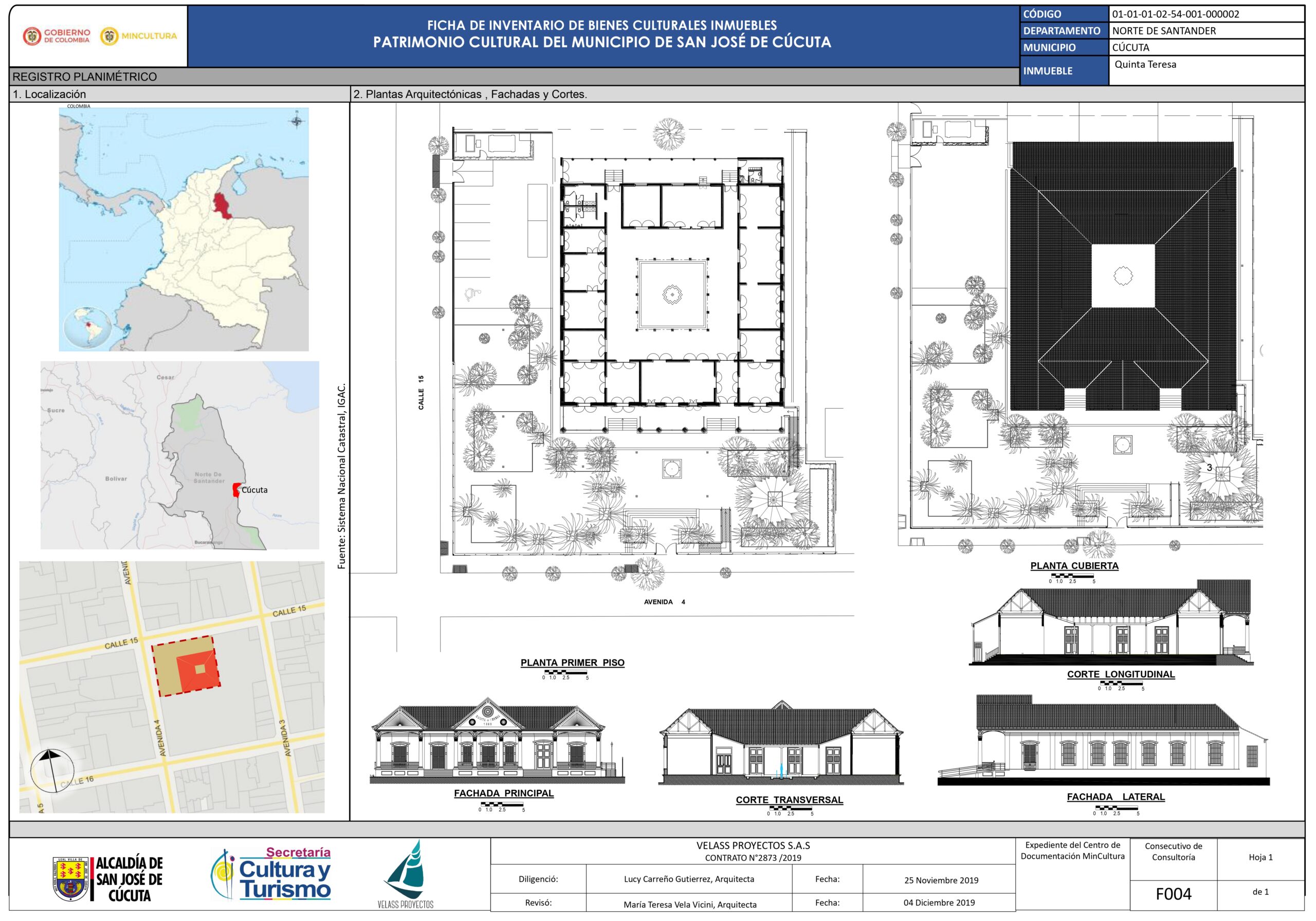 En el año 2019 Velass Proyectos S.A.S realiza la complementación del inventario de los más representativos seleccionando doce (12) Bienes de Interés Cultural del centro histórico de Cúcuta del municipio de San José de Cúcuta.
